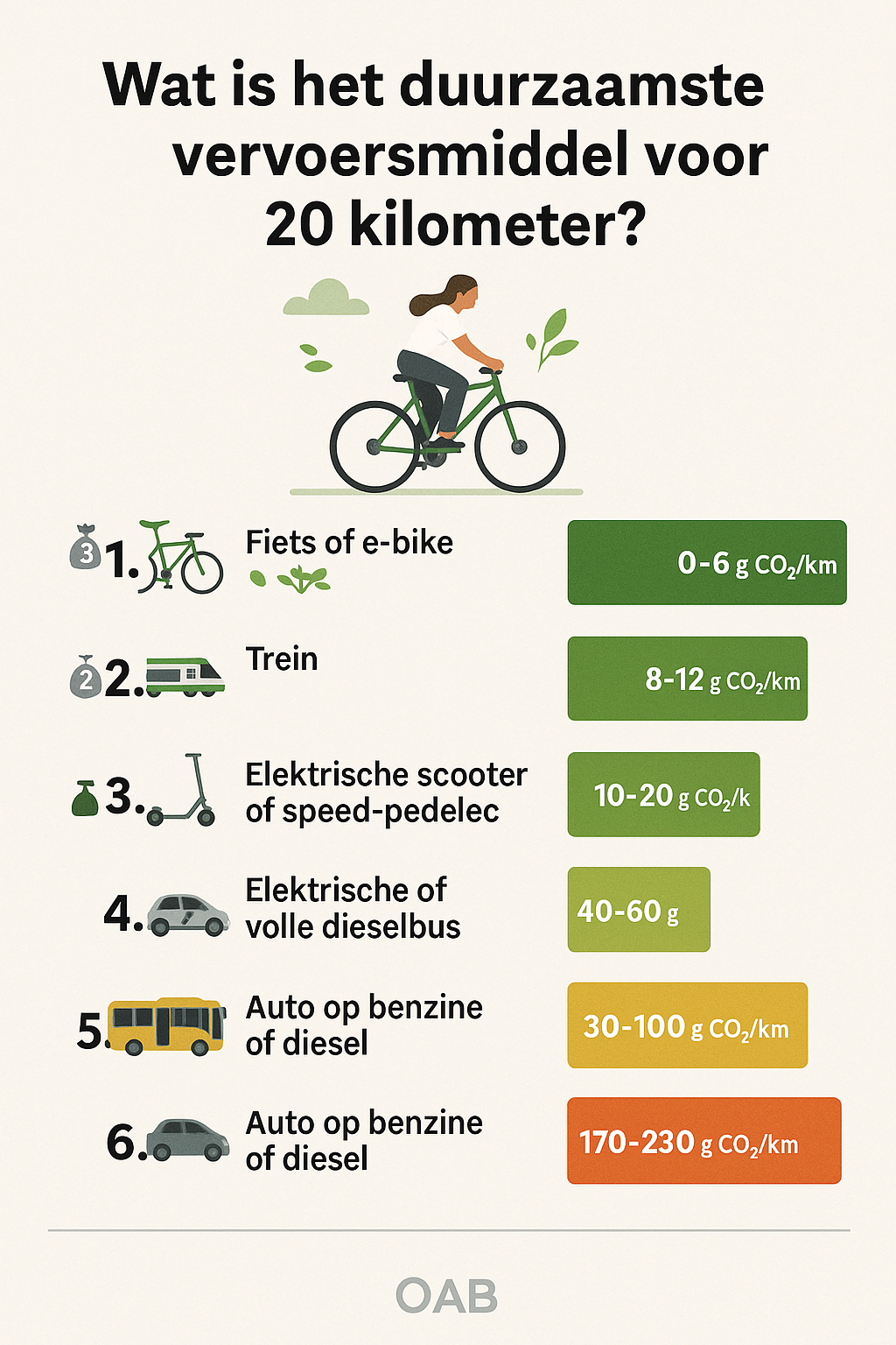 🌍 Wat is het duurzaamste vervoersmiddel voor 20 kilometer?